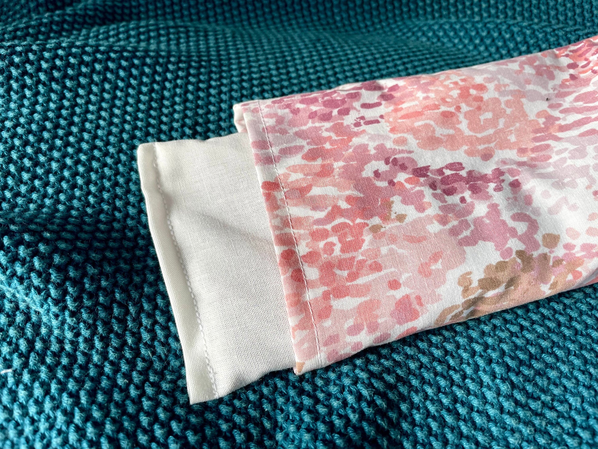 The polycotton outer case features a gentle pattern of pinks, plums and browns on a white background. The cover is removable and machine washable at up to 40 degrees. The inner pillow fabric is 50/50 cotton polyester mix fabric.
